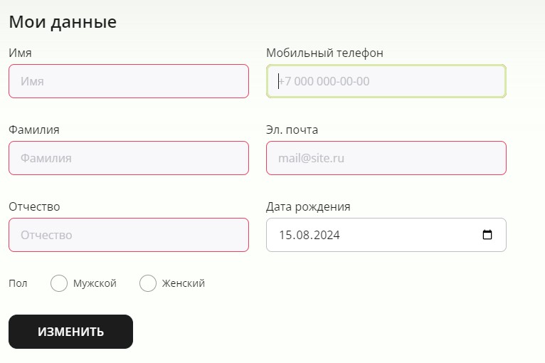 - Заполняете данные, нажимаете на кнопку «ИЗМЕНИТЬ»